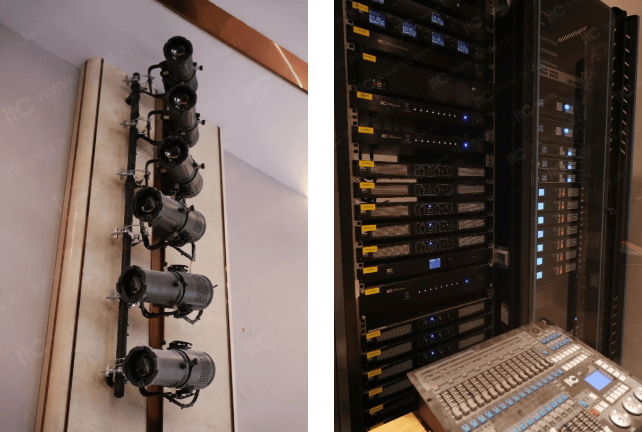 为满足企业各类活动对灯光效果的差异化需求, itc舞台灯光系统配置了多组摇头灯、影视灯、固定染色灯、追光灯等舞台专业灯具,支持会议照明、演出渲染、拍摄辅助等功能,创造出温馨舒适且光影交错的舞台氛围。